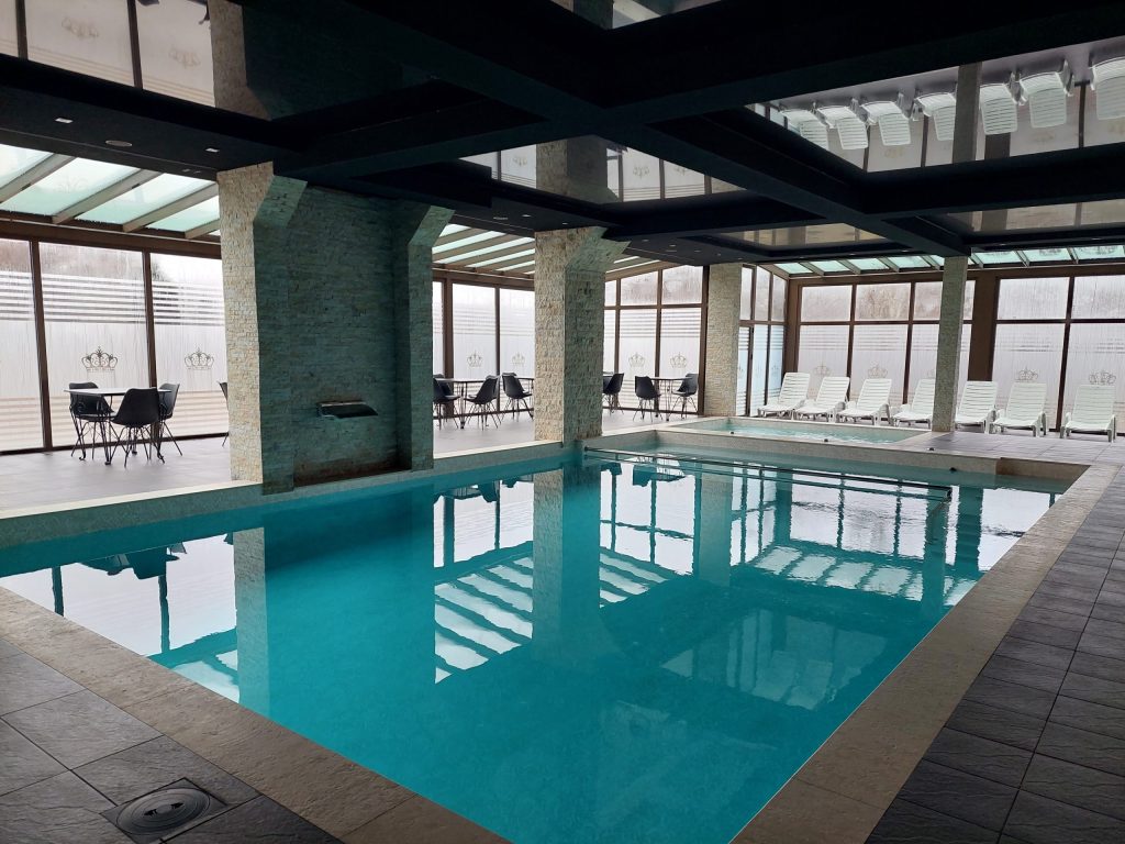 U nasem wellness i spa centru mozete koristiti usluge saune, tepidarijuma, parnog kupatila, bazena sa hidromasažama i manjeg dečijeg bazena. Kapacitet zatvorenog bazena, wellness i spa centra je 30 osoba. Radno vreme: 10h – 22h.